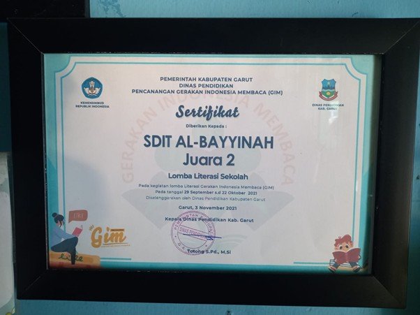 - Juara 2 Lomba Literasi Sekolah pada Kegiatan Lomba Literasi Gerakan Indonesia Membaca (GIM). Pada tanggal 29 September s.d 22 Oktober 2021 yang Diselenggarakan oleh Dinas Pendidikan Kabupaten Garut.